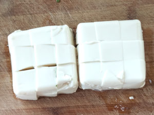 ![]() 5:豆腐はさいの目に切りましょう。 |