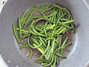 ニンニクの芽は長く炒めるので、柔らかく仕上がると思います。