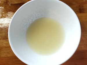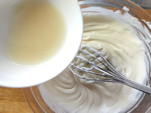 ![]() 15:しっかりと混ざったら、アガー用水を少しずつ加え、その都度よく混ぜましょう。 |