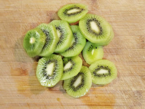 ![]() 17:キウイは皮をむき、少し厚めにスライスしましょう。 |