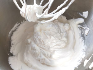 ![]() 20:スタンドミキサーでホイップ用クリームとホイップ用砂糖、ホイップ用レモン汁を加えて、少し固めに泡立てたら、型を持ち上げて外し、ケーキの側面にクリームを塗ります。 |