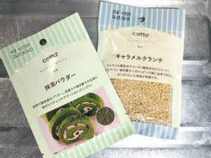 ![]() 1:今回は、100均ダイソーの抹茶パウダーとキャラメルクランチを使いました。 |
