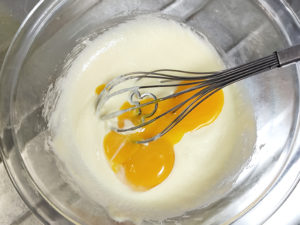 ![]() 4:ボールに卵黄を入れて、なじむまでしっかり目に混ぜます。 |
