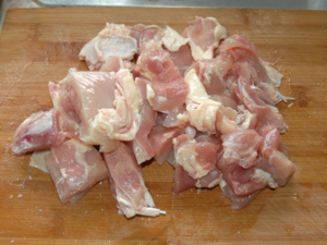 ![]() ①鶏肉は小さめの一口大に切ります。 |