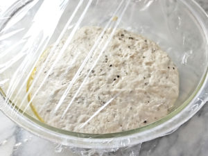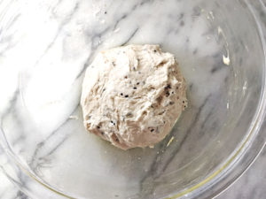 ![]() 6:大き目の耐熱ボールにオリーブオイル大1弱(分量外)を塗り、丸めた生地を入れましょう。 |