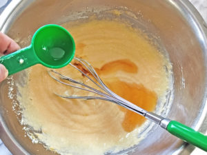 ![]() 11:クリーム用の卵もボールに加え、なじむまでよく混ぜます。 |