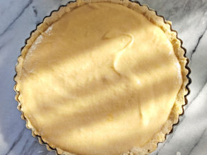 フランジパーヌタルトということで、アーモンドリキュールのアマレットを加え、砂糖なども少し控えめにしてアレンジしてみました。冷やして食べるとさらに美味しいです。