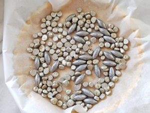 ![]() 8:型を取り出したら、内側にクッキングシートを敷き、生地が浮かないようにパイ重しを乗せます。 |