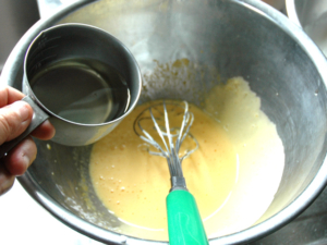 ![]() ③サラダ油を少しずつ加え、その都度良く混ぜます。 |