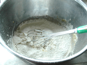![]() ⑥薄力粉とベーキングパウダーを合わせてふるい入れ、粉っぽさが消えるまで良く混ぜ合わせます。 |