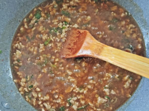 ![]() 8:とろみがついたら、タレはOK。 |