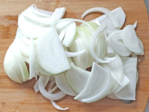 ![]() 5:玉ねぎは皮をむき、薄切りにします。 |