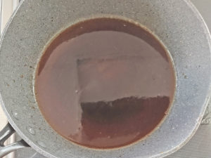 ![]() 7:フライパンをきれいにしたら、酒、砂糖、みりん、しょうゆを入れて火にかけます。 |