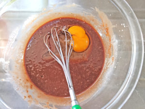 ![]() 5:卵を割り入れ、なじむまでよく混ぜます。 |