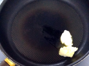 ![]() ⑥フライパンにマーガリンを入れて溶かしましょう。 |