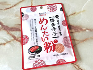 ![]() 5:今回は、100均ダイソーでゲットした「めんたい粉」を使いました。 |