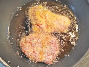 4:蓋をして、片面4~5分揚げ、ひっくり返して、さらに4~5分揚げましょう。
