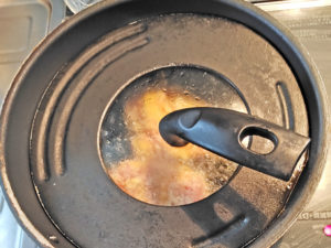 ※蓋は水平に動かさないと、湯気が中に落ちて跳ねるので注意!