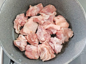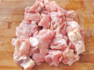 ![]() 2:鶏肉は少し大きめの一口大に切りましょう。 |