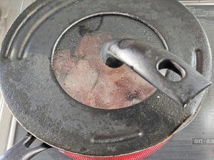 ![]() 6:蓋をして、4分ほど火を通したら、ひっくり返してさらに3~4分蒸し焼きにしましょう。 |