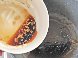 ![]() 6:ナスの両面が焼けたら、フライパンの油を取り除いて、ナスも一旦取り出し、甘辛ダレを投入しましょう。 |