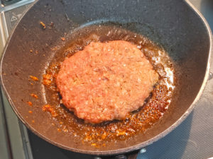 ハンバーグは、できるだけ薄く伸ばすのがポイントです。