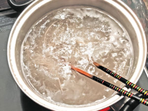 ![]() 5:大きめの鍋にたっぷりのお湯を沸かし、そばを人数分ゆでましょう。 |