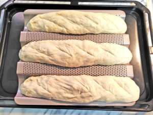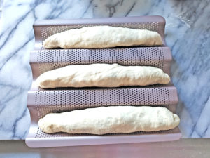 フランスパン専用の天板がない場合は、クッキングシートを敷いてから、生地を乗せて焼いてみてください。