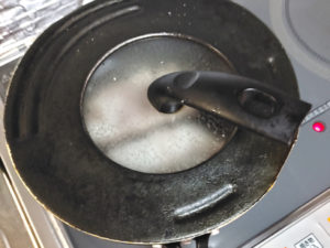 4:蓋をして、裏と表3~4分ずつ蒸し焼きにしましょう。
