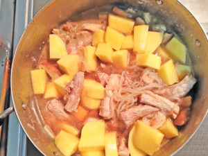 じゃがいもは煮すぎると崩れるので、あまり煮過ぎないように状態を見ながら煮てください。