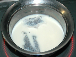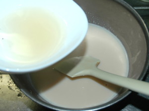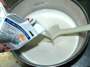 ![]() ③小鍋に、牛乳、砂糖、紅茶を入れて、沸騰寸前まで、混ぜながら温めます。 (砂糖が溶ければOKです。) |