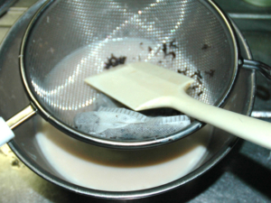 ![]() ④温まったら、一旦こして、ボールに移します。 |