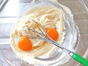 ![]() 3:ボールに卵黄を入れて、なじむまでしっかり目に混ぜます。 |