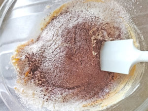 ![]() 4:薄力粉とココアを、一緒にふるい入れ、ゴムベラで練らないようにさっくりと混ぜましょう。 |