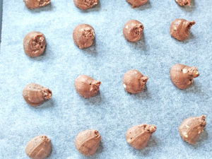 ![]() 8:天板にクッキングシートを敷き、間隔を空けて小さめに絞りましょう。 |