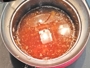 ![]() 8:小鍋につけダレの材料を全て入れて火にかけ、混ぜながら調味料を完全に溶かせばOK。 |
