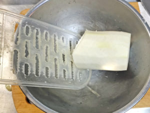 ![]() 5:大根は皮をむき、おろし金ですりおろします。 |