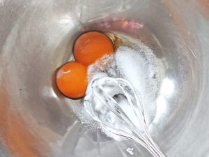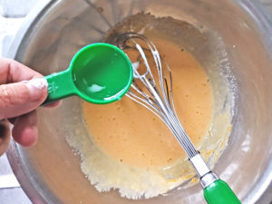 ![]() 5:サラダ油を少しずつ加え、その都度良く混ぜます。 |
