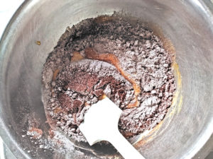 ![]() 7:薄力粉とココアパウダーを合わせてふるい入れ、粉っぽさが消えるまで良く混ぜ合わましょう。 |