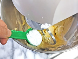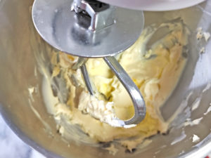 ![]() 3:室温に戻したマーガリンをスタンドミキサーのボールに入れ、ビーターを取り付けて、クリーム状になるまで混ぜます。 |