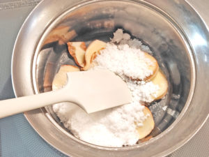 2:小鍋に生姜と砂糖を加え、良く混ぜ合わせて、15分放置しましょう。