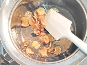 ※そばについていないと焦げる可能性があるので、ごく弱火にするだけでなく、見守って焦げないようにしてください。