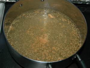 ![]() ②鍋に水とコンソメを入れ、沸騰させましょう。 |