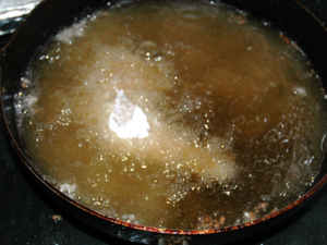 ![]() ⑧170度くらいの油で、表面がキツネ色になるまで揚げます。 (途中何度かひっくり返して下さい。) |