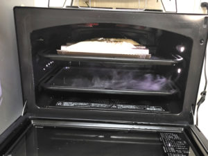 かなり熱くなるので、天板を取り出す時には、厚めのミットが必須です。