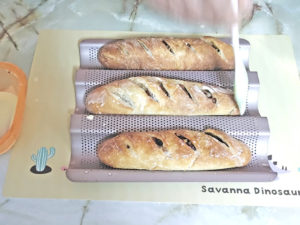 ドライミックスフルーツをラム酒に漬けこみ、バゲットに加えてみました。シュトーレン風のフランスパンは、焼きたてが最高です!ぜひ、クリスマスに。^^