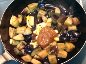 ![]() ⑥ナスが柔らかくなったら、ゆず味噌と柚子の皮を加え、全体に味が絡んだらOKです。 |