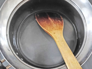 17:鍋を火にかけ、混ぜながら沸騰させます。