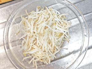 ![]() 2:耐熱ボールにもやしを入れ、ふんわりとラップをして、レンジで3分ほど加熱しましょう。 3:加熱後は、冷水にとり、水気を良く切っておきます。 |