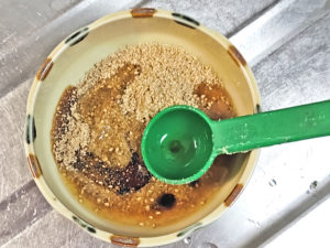 ![]() 4:小さめの器に、すりごま、ごま油、醤油、カンタン酢を入れて混ぜ、ドレッシングを作りましょう。 |